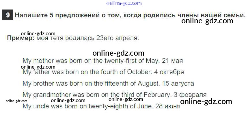 Готовые домашние задания по Английскому языку за 5 класс Учебник Афанасьева, Михеева Rainbow 2017 - Step 7 Unit 2. Family History 9