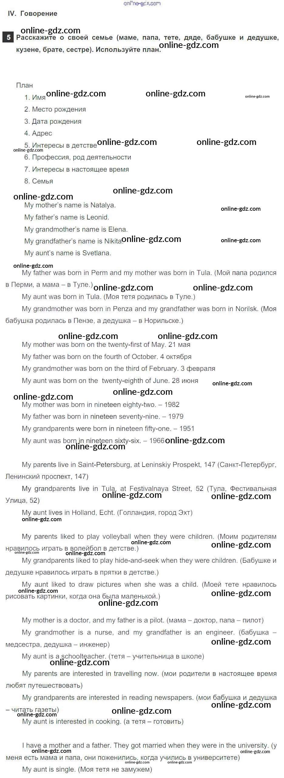 Готовые домашние задания по Английскому языку за 5 класс Учебник Афанасьева, Михеева Rainbow 2017 - Step 9. Test Yourself Unit 2. Family History 4