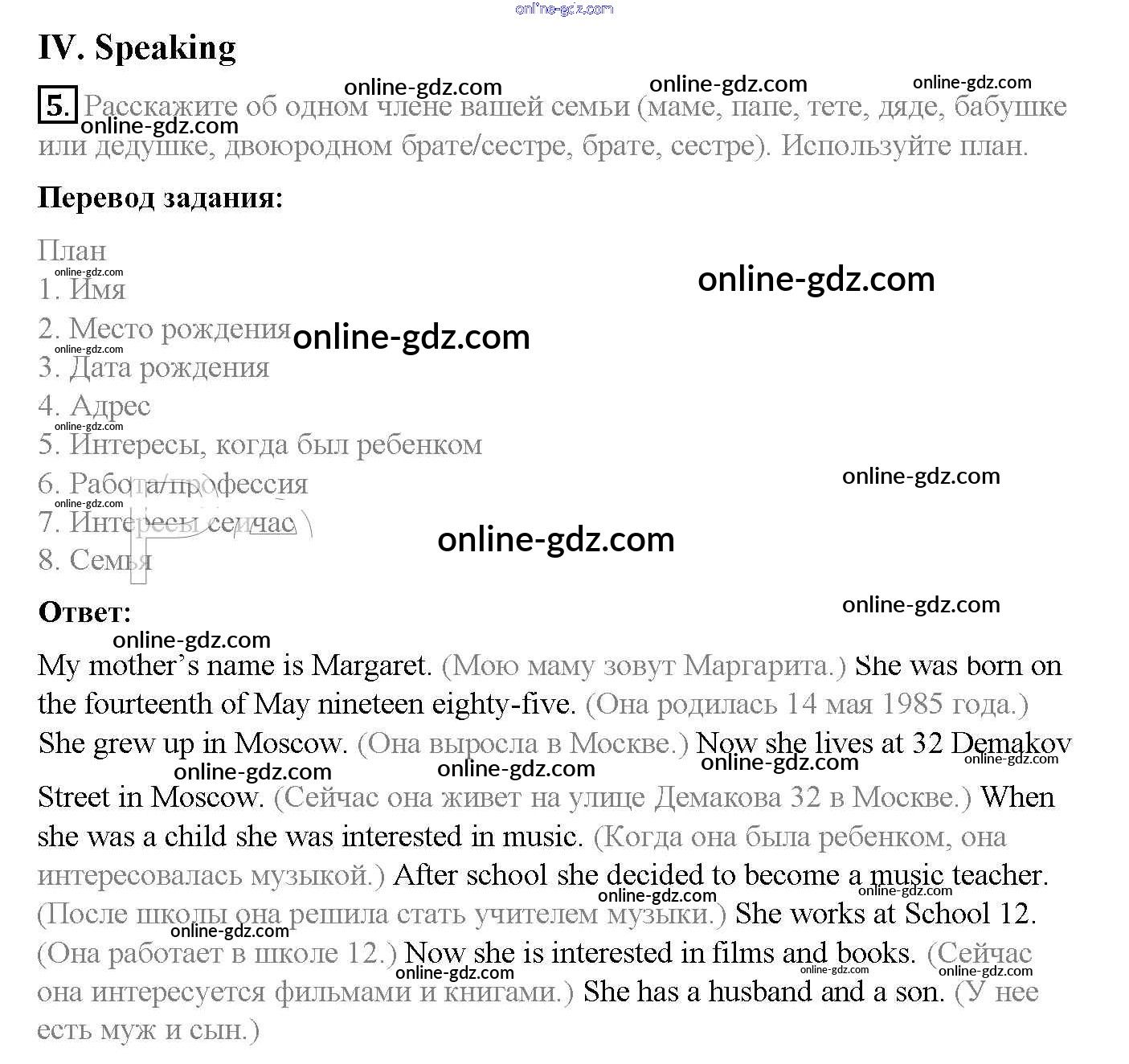Готовые домашние задания по Английскому языку за 5 класс Учебник Афанасьева, Михеева Rainbow 2017 - Step 9. Test Yourself Unit 2. Family History 5