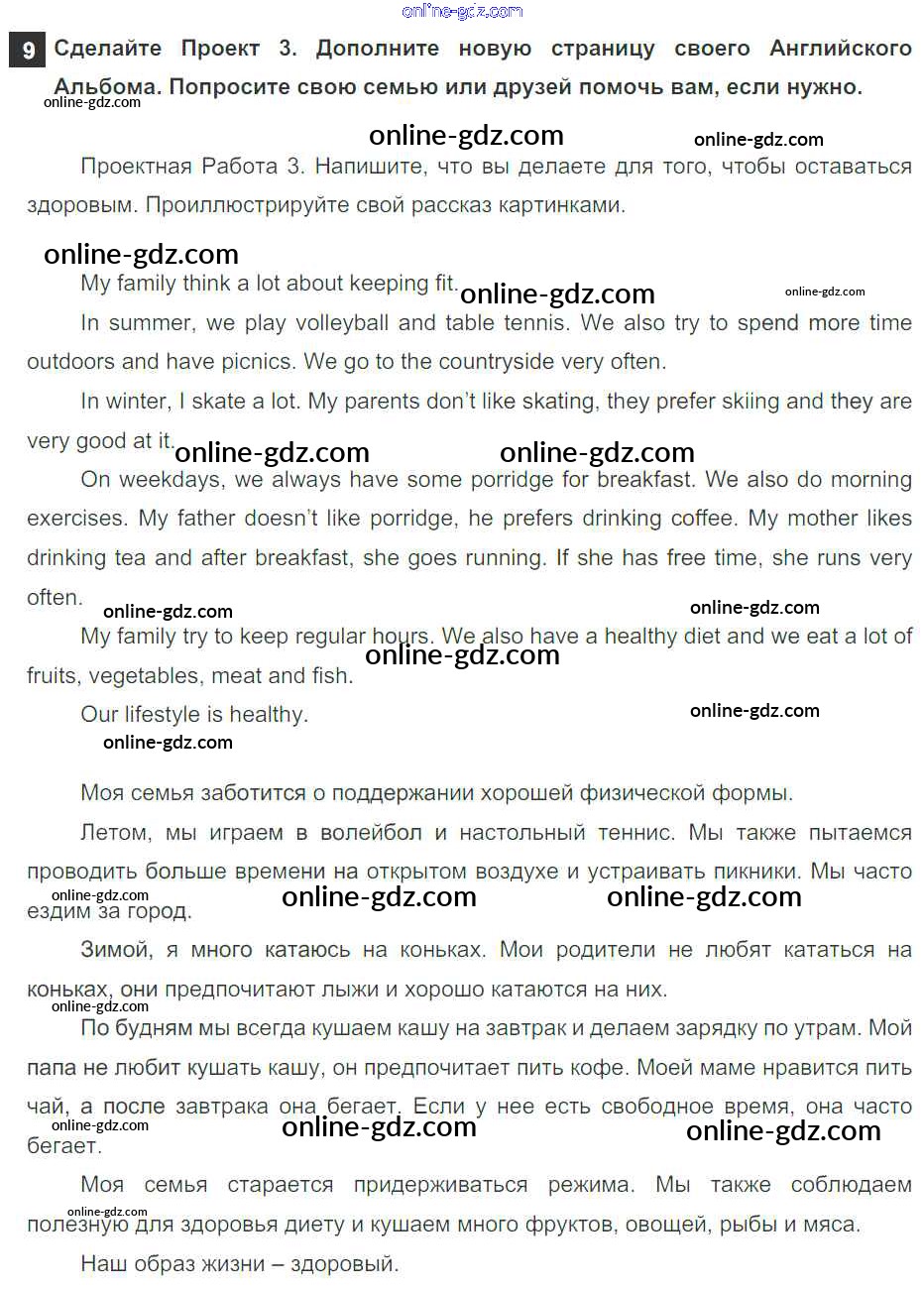 Готовые домашние задания по Английскому языку за 5 класс Учебник Афанасьева, Михеева Rainbow 2017 - Step 10. Enjoy Yourself Unit 3. Healthy Ways 9