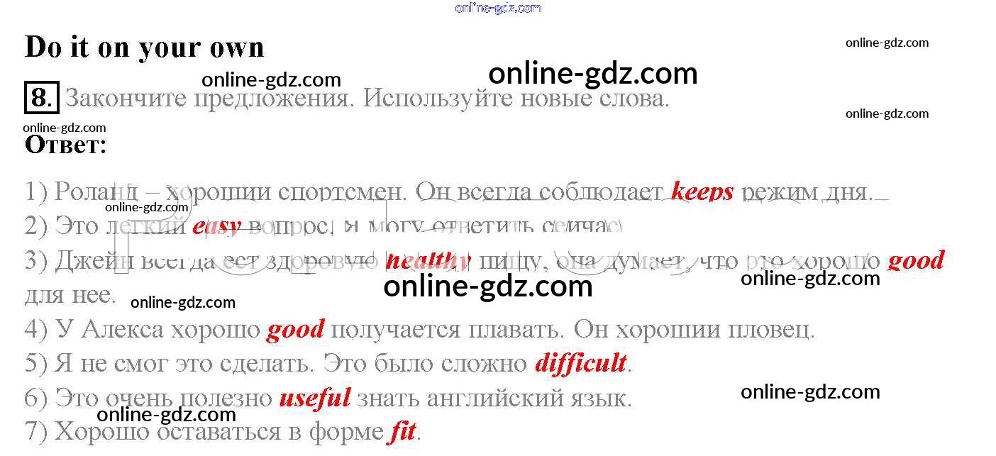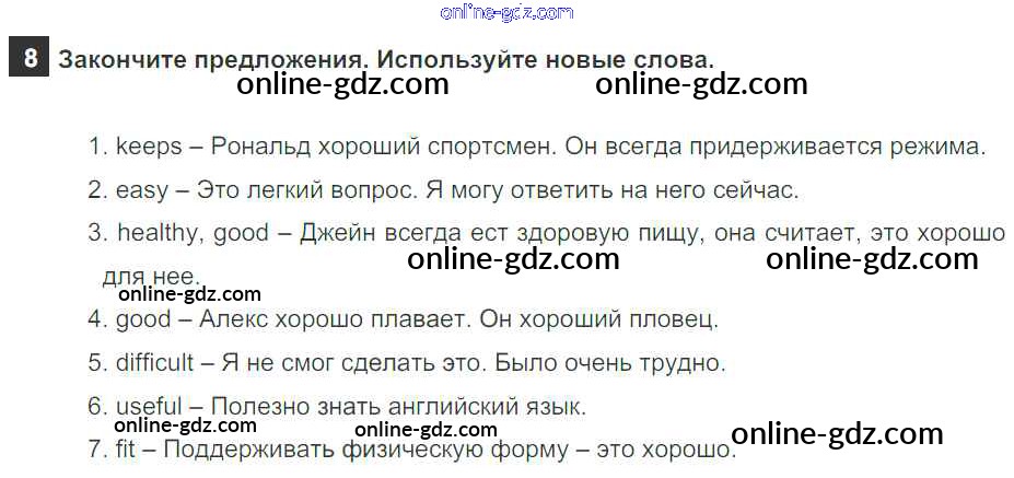 Готовые домашние задания по Английскому языку за 5 класс Учебник Афанасьева, Михеева Rainbow 2017 - Step 3 Unit 3. Healthy Ways 8