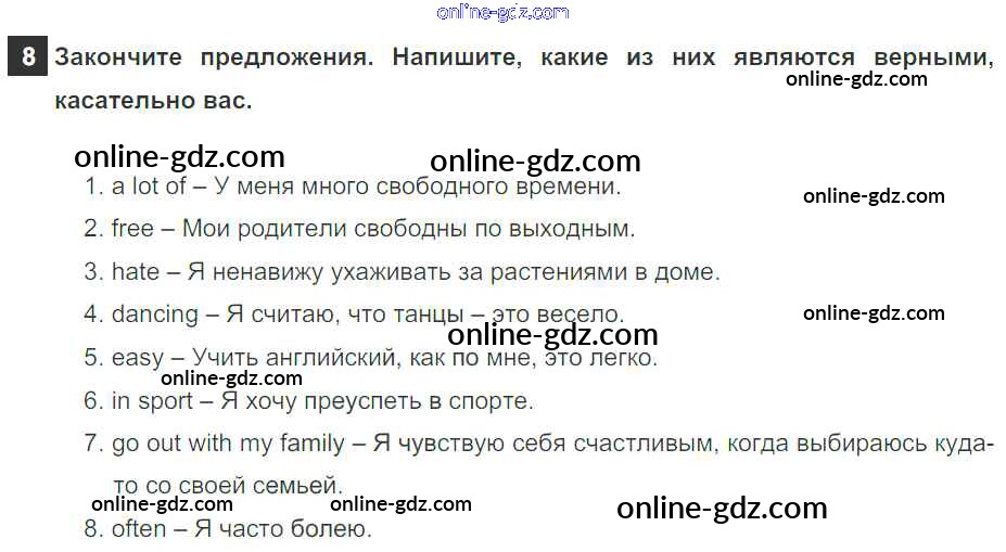 Готовые домашние задания по Английскому языку за 5 класс Учебник Афанасьева, Михеева Rainbow 2017 - Step 5 Unit 3. Healthy Ways 8