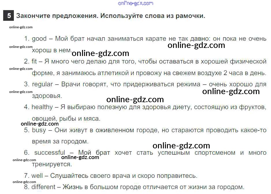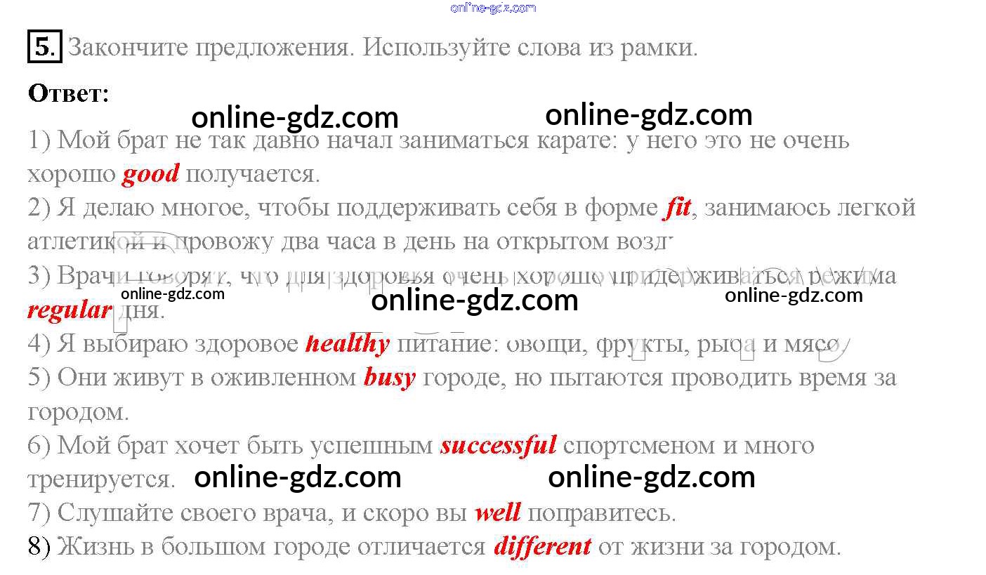 Готовые домашние задания по Английскому языку за 5 класс Учебник Афанасьева, Михеева Rainbow 2017 - Step 8. Round-up Unit 3. Healthy Ways 5