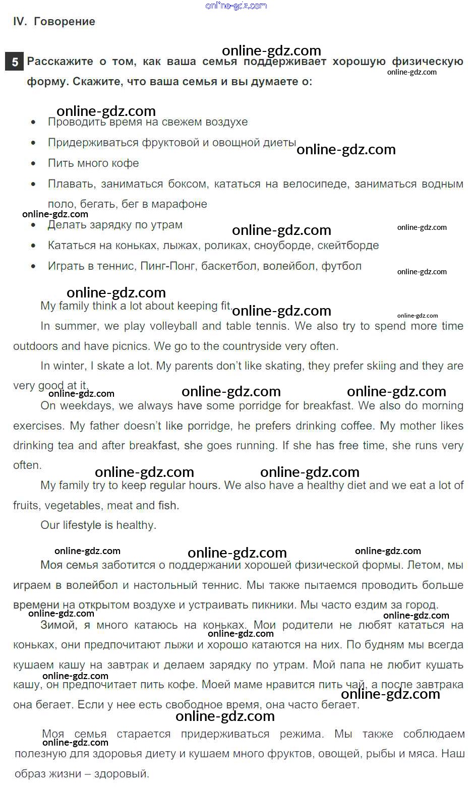 Готовые домашние задания по Английскому языку за 5 класс Учебник Афанасьева, Михеева Rainbow 2017 - Step 9. Test Yourself Unit 3. Healthy Ways 4