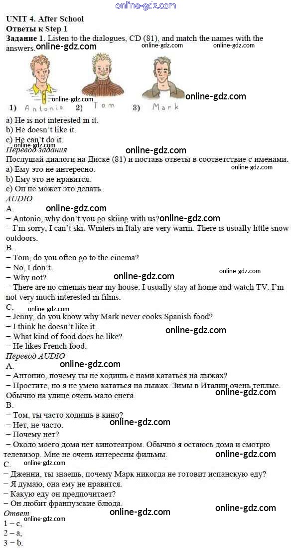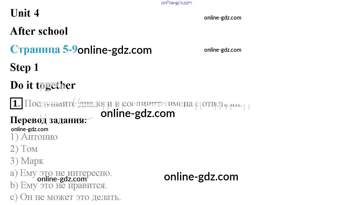 Готовые домашние задания по Английскому языку за 5 класс Учебник Афанасьева, Михеева Rainbow 2017 - Step 1 Unit 4. After School 1