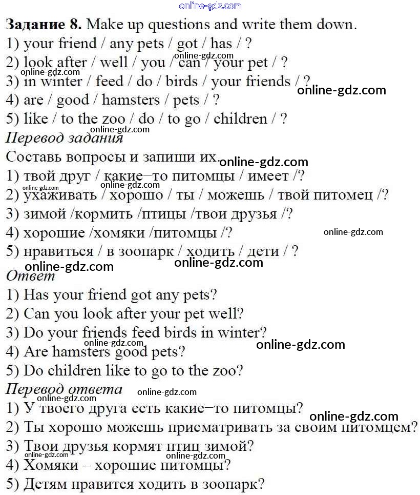 Готовые домашние задания по Английскому языку за 5 класс Учебник Афанасьева, Михеева Rainbow 2017 - Step 1 Unit 4. After School 8
