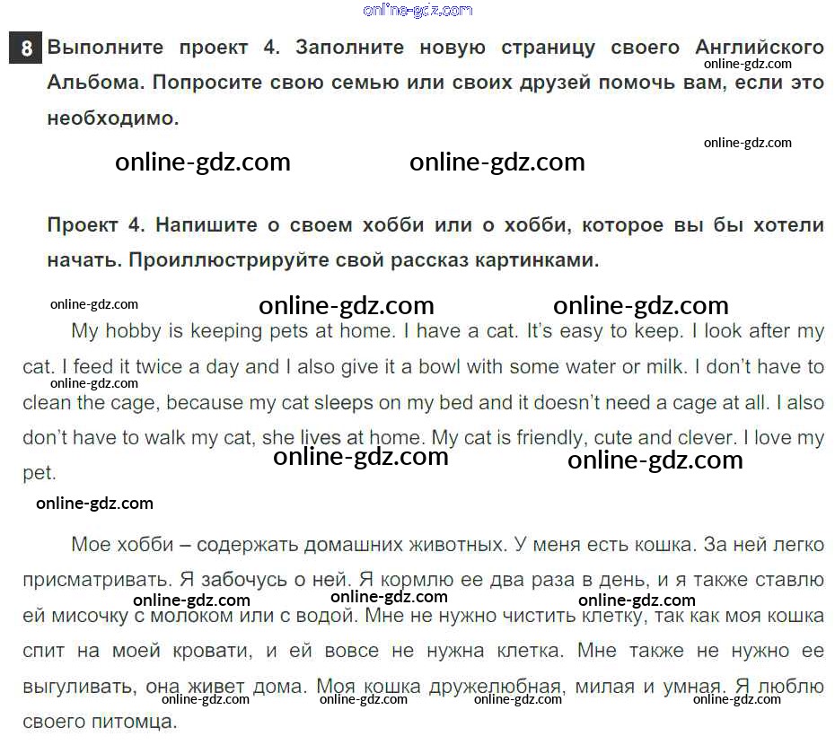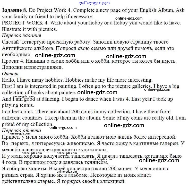 Готовые домашние задания по Английскому языку за 5 класс Учебник Афанасьева, Михеева Rainbow 2017 - Step 10. Enjoy Yourself Unit 4. After School 8