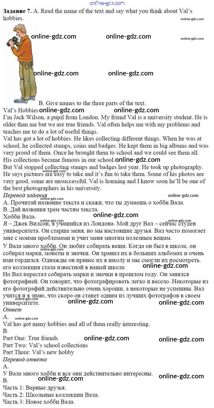 Готовые домашние задания по Английскому языку за 5 класс Учебник Афанасьева, Михеева Rainbow 2017 - Step 4 Unit 4. After School 7