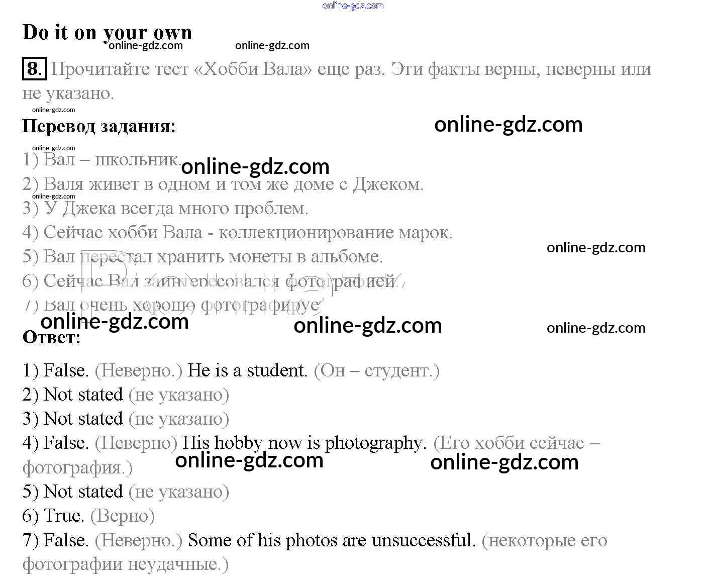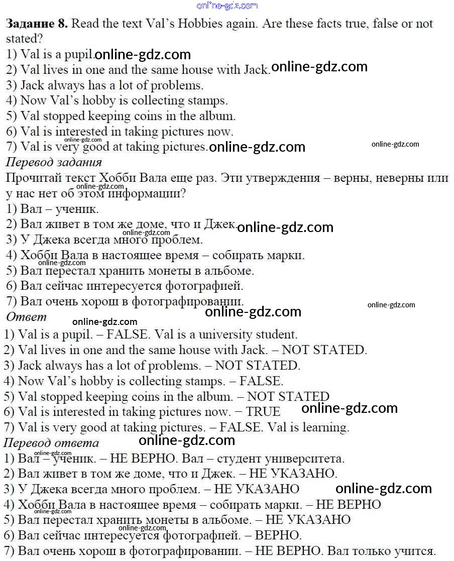 Готовые домашние задания по Английскому языку за 5 класс Учебник Афанасьева, Михеева Rainbow 2017 - Step 4 Unit 4. After School 8