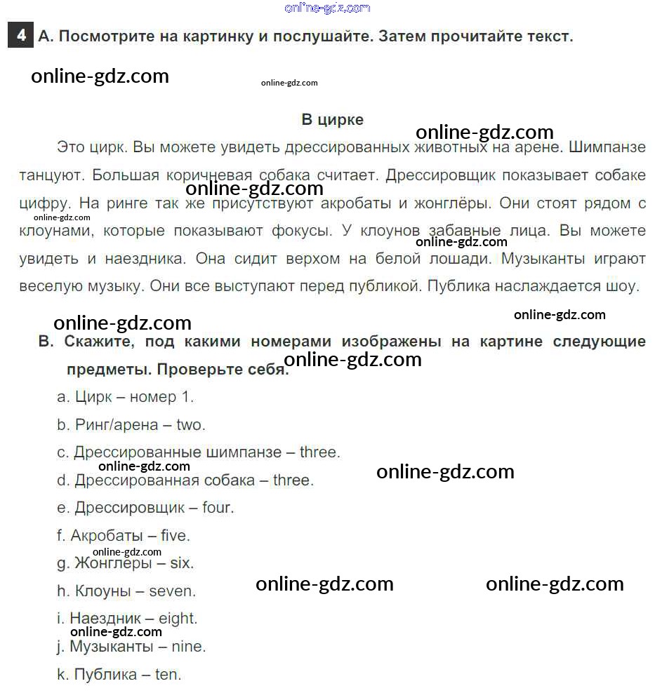 Готовые домашние задания по Английскому языку за 5 класс Учебник Афанасьева, Михеева Rainbow 2017 - Step 7 Unit 4. After School 4