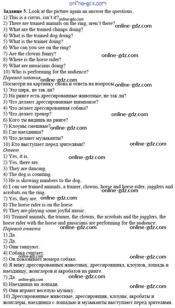 Готовые домашние задания по Английскому языку за 5 класс Учебник Афанасьева, Михеева Rainbow 2017 - Step 7 Unit 4. After School 5