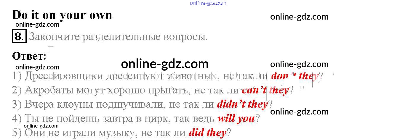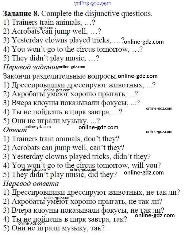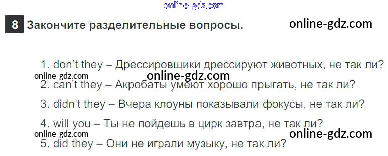 Готовые домашние задания по Английскому языку за 5 класс Учебник Афанасьева, Михеева Rainbow 2017 - Step 7 Unit 4. After School 8