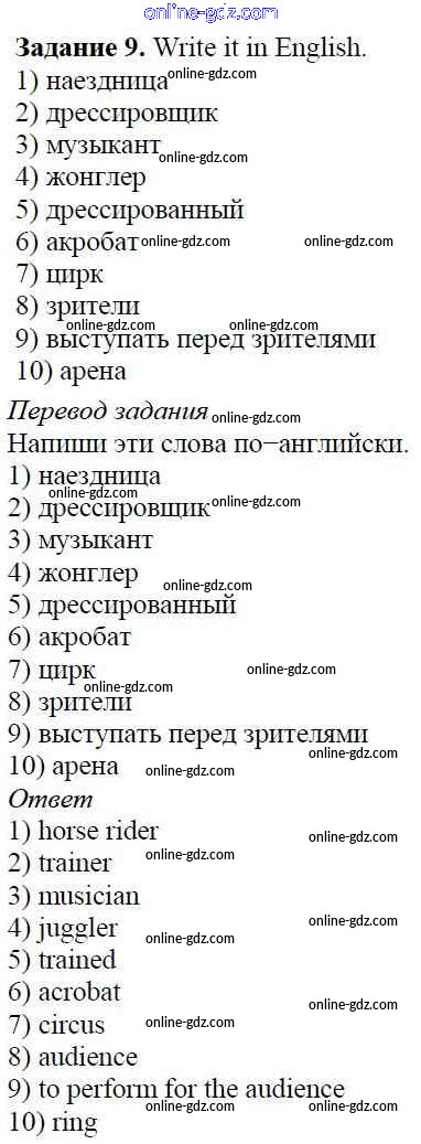 Готовые домашние задания по Английскому языку за 5 класс Учебник Афанасьева, Михеева Rainbow 2017 - Step 7 Unit 4. After School 9