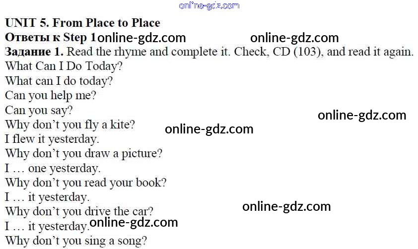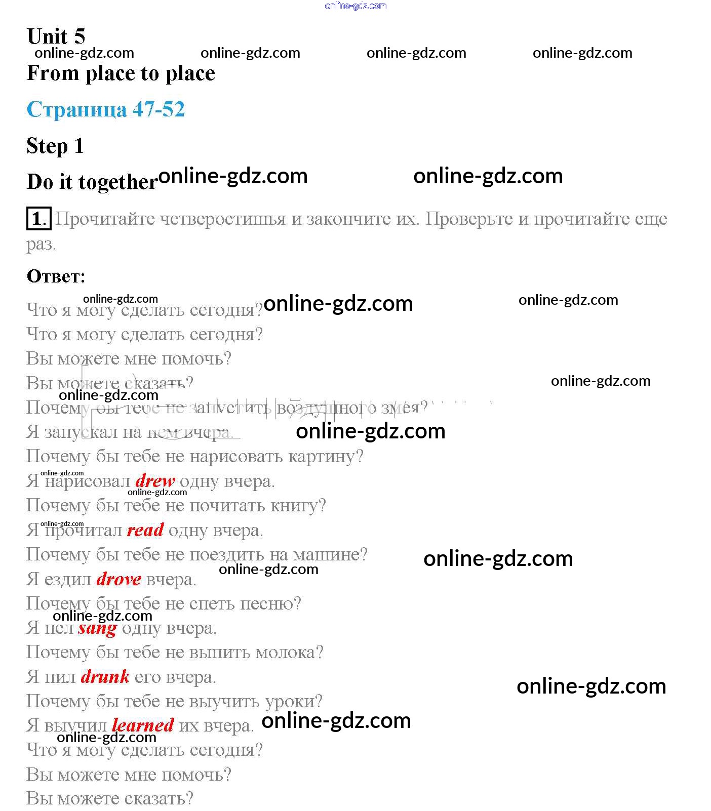 Готовые домашние задания по Английскому языку за 5 класс Учебник Афанасьева, Михеева Rainbow 2017 - Step 1 Unit 5. From Place to Place 1