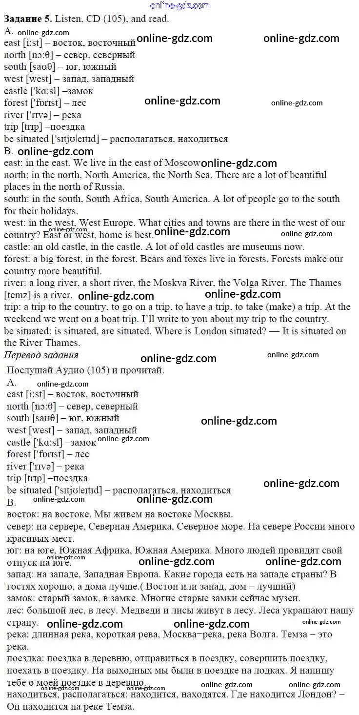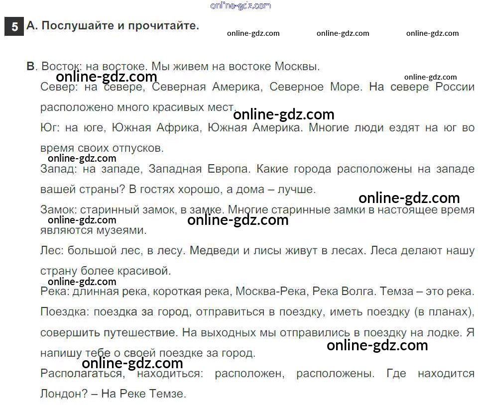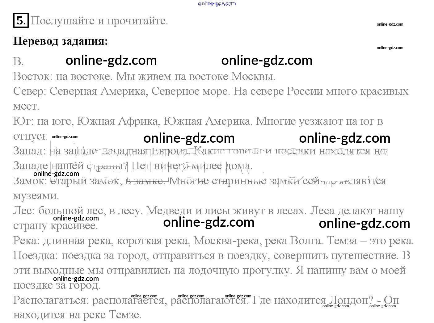 Готовые домашние задания по Английскому языку за 5 класс Учебник Афанасьева, Михеева Rainbow 2017 - Step 1 Unit 5. From Place to Place 5