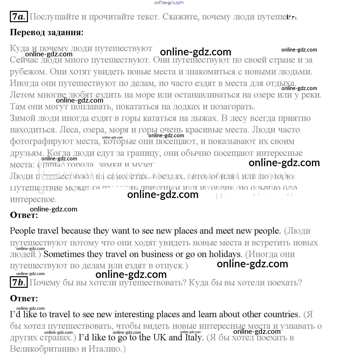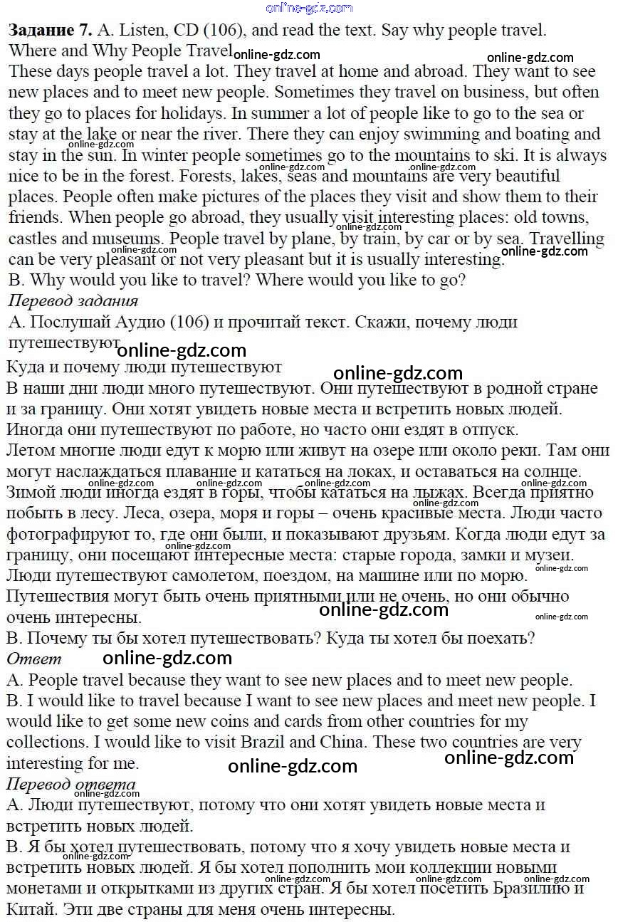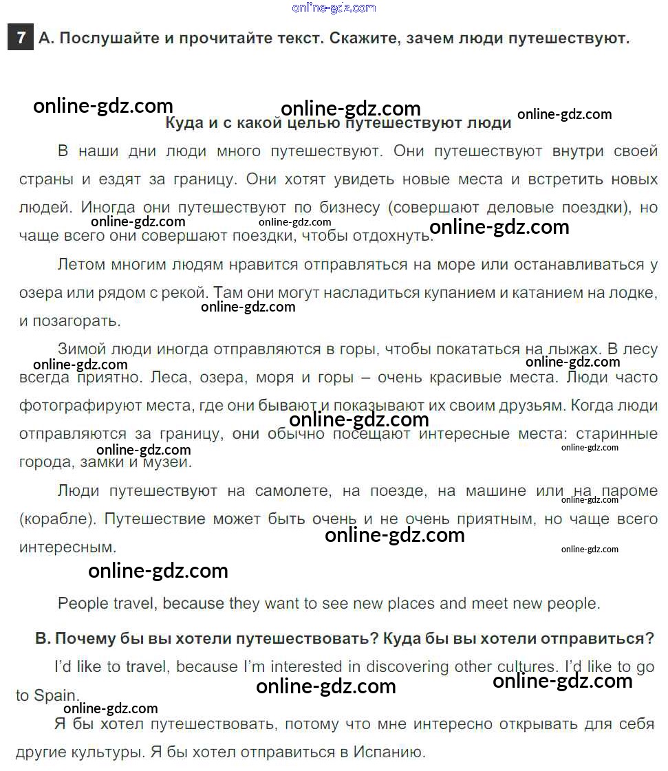 Готовые домашние задания по Английскому языку за 5 класс Учебник Афанасьева, Михеева Rainbow 2017 - Step 1 Unit 5. From Place to Place 7