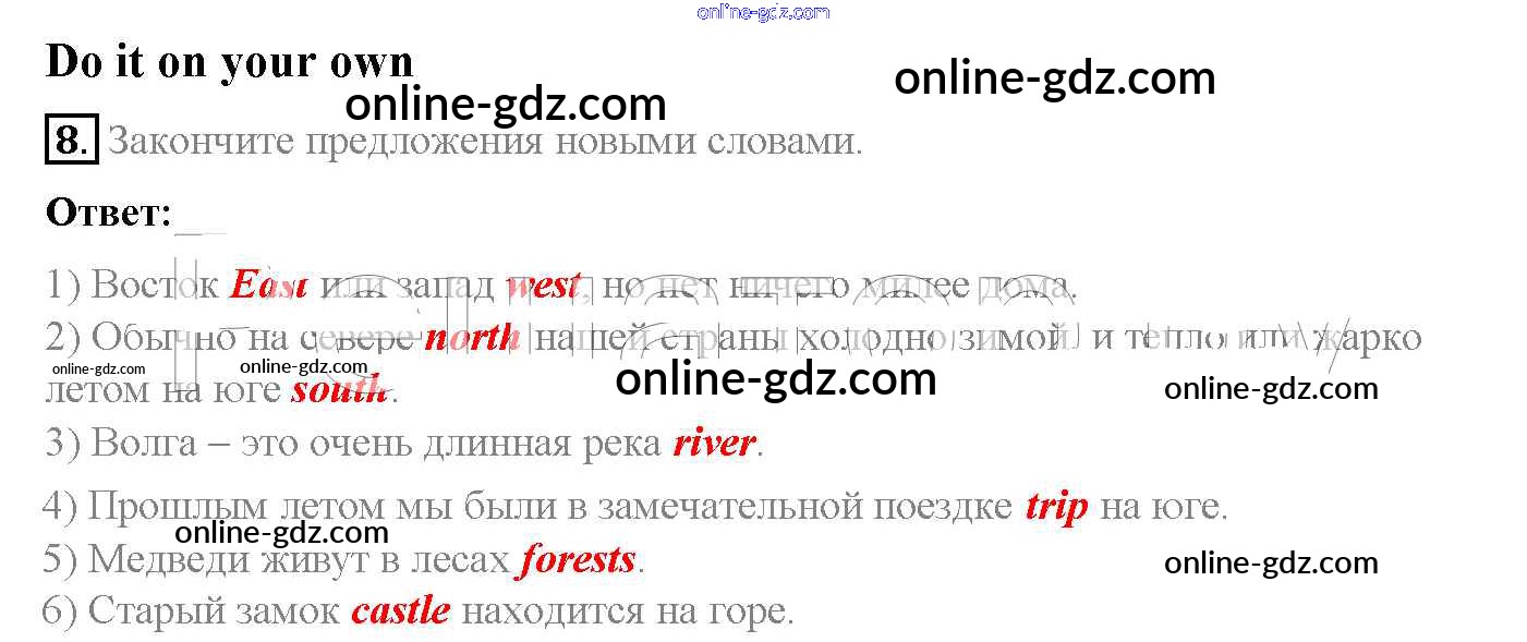 Готовые домашние задания по Английскому языку за 5 класс Учебник Афанасьева, Михеева Rainbow 2017 - Step 1 Unit 5. From Place to Place 8