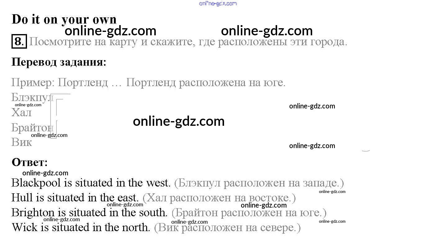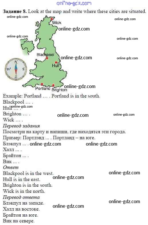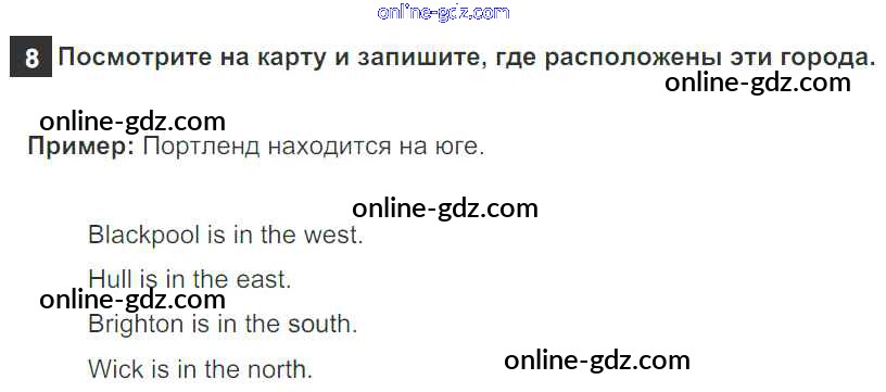 Готовые домашние задания по Английскому языку за 5 класс Учебник Афанасьева, Михеева Rainbow 2017 - Step 2 Unit 5. From Place to Place 8