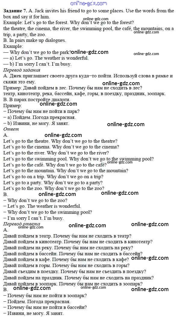 Готовые домашние задания по Английскому языку за 5 класс Учебник Афанасьева, Михеева Rainbow 2017 - Step 3 Unit 5. From Place to Place 7