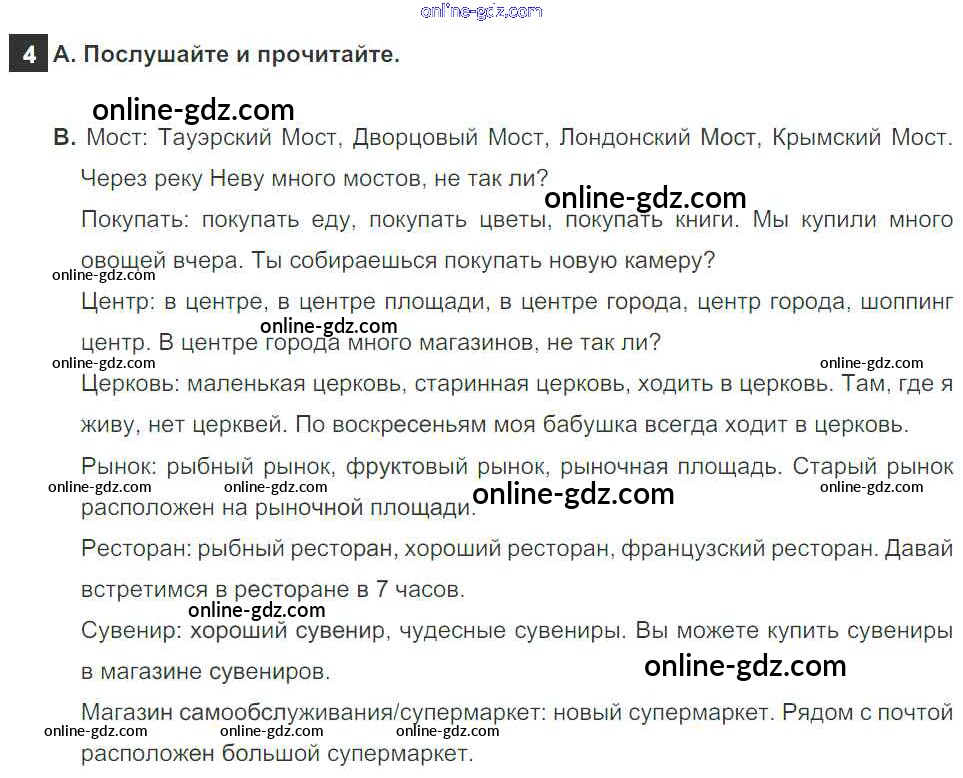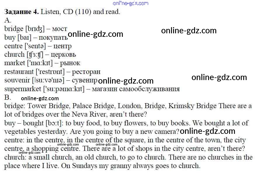 Готовые домашние задания по Английскому языку за 5 класс Учебник Афанасьева, Михеева Rainbow 2017 - Step 4 Unit 5. From Place to Place 4