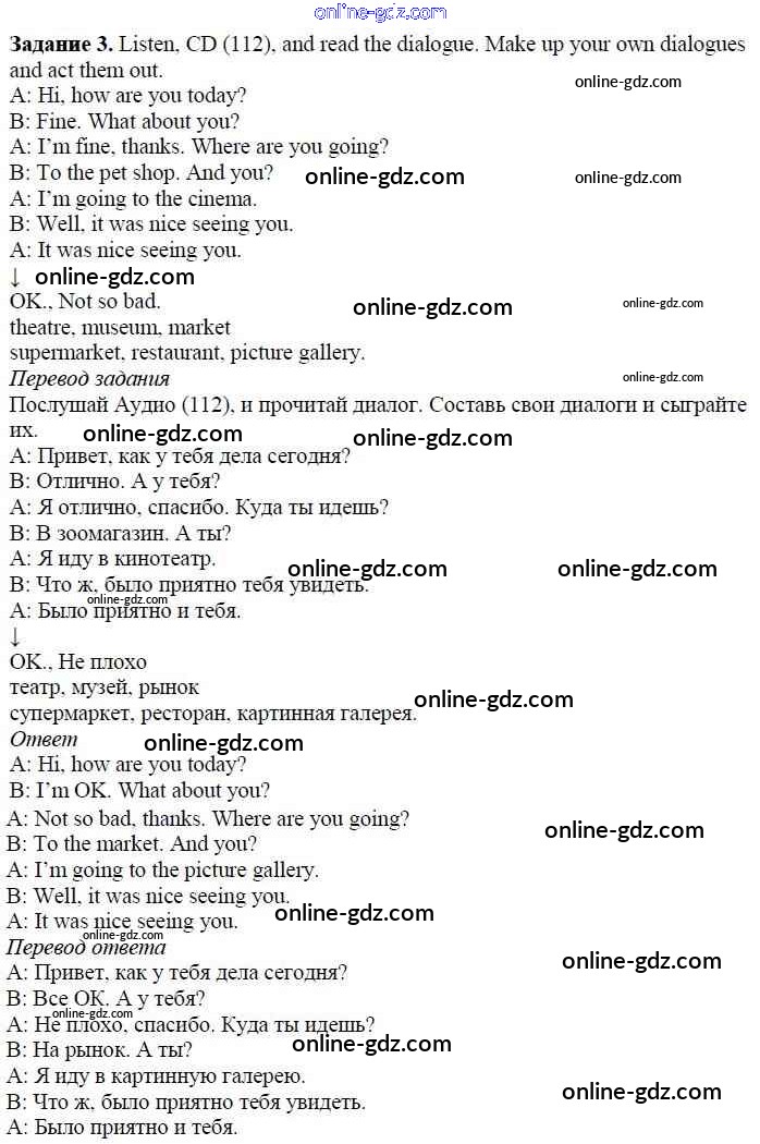 Готовые домашние задания по Английскому языку за 5 класс Учебник Афанасьева, Михеева Rainbow 2017 - Step 5 Unit 5. From Place to Place 3