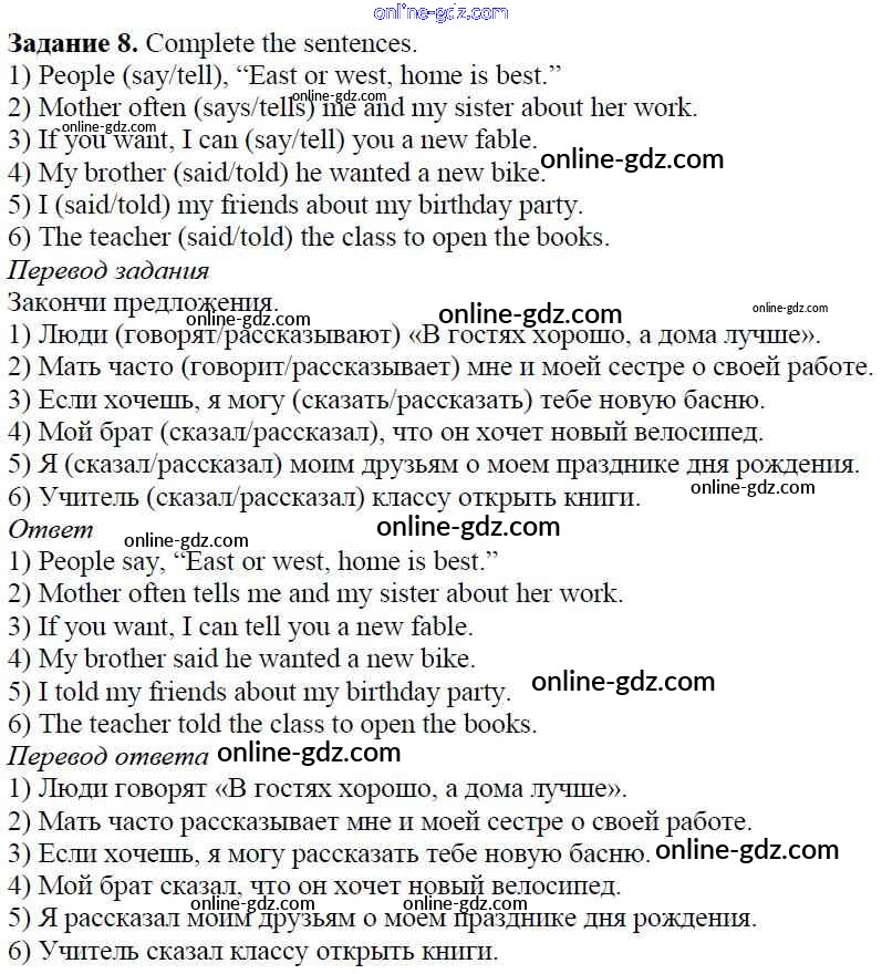 Готовые домашние задания по Английскому языку за 5 класс Учебник Афанасьева, Михеева Rainbow 2017 - Step 5 Unit 5. From Place to Place 8