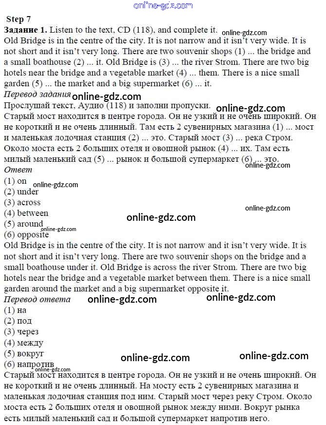 Готовые домашние задания по Английскому языку за 5 класс Учебник Афанасьева, Михеева Rainbow 2017 - Step 7 Unit 5. From Place to Place 1