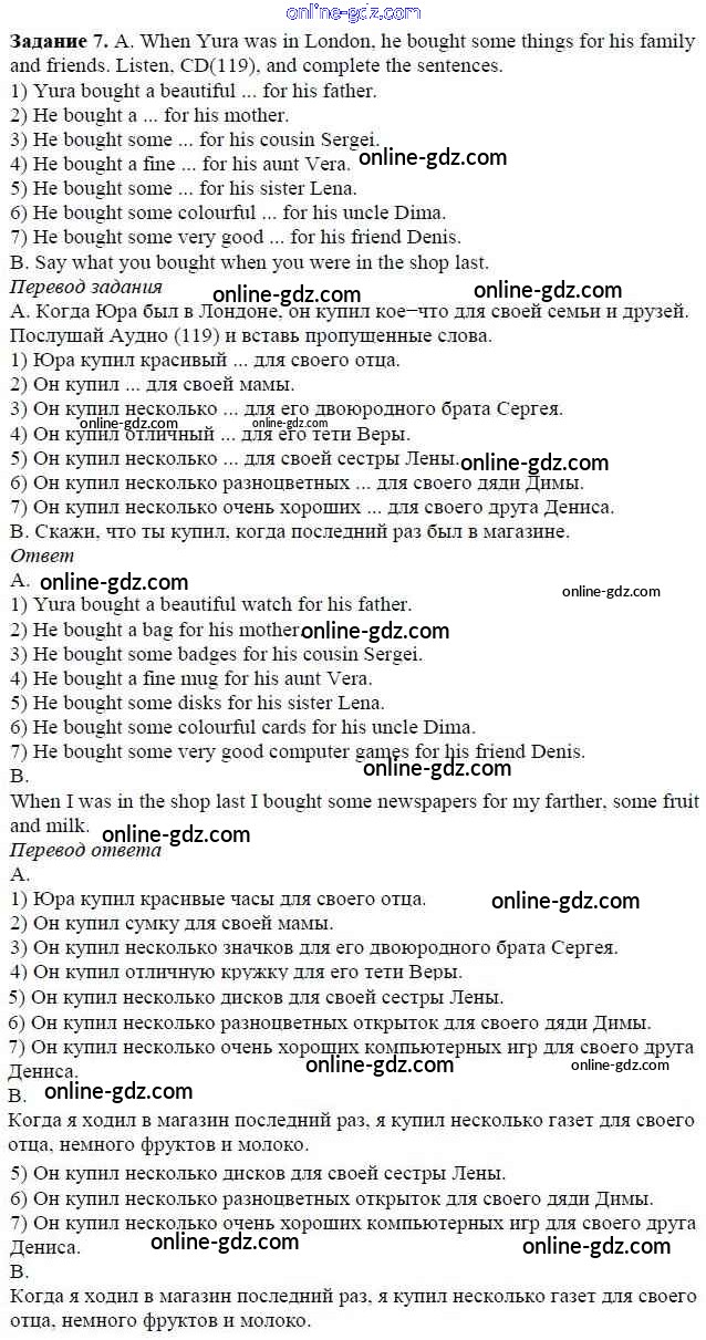 Готовые домашние задания по Английскому языку за 5 класс Учебник Афанасьева, Михеева Rainbow 2017 - Step 7 Unit 5. From Place to Place 7