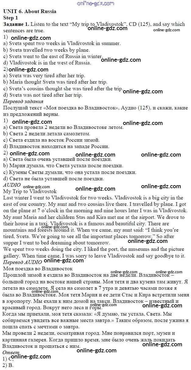 Готовые домашние задания по Английскому языку за 5 класс Учебник Афанасьева, Михеева Rainbow 2017 - Step 1 Unit 6. About Russia 1