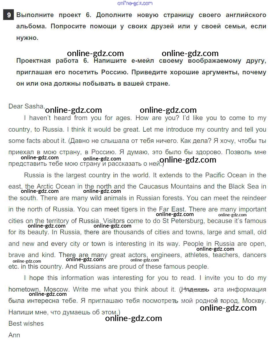Готовые домашние задания по Английскому языку за 5 класс Учебник Афанасьева, Михеева Rainbow 2017 - Step 10. Enjoy Yourself Unit 6. About Russia 9