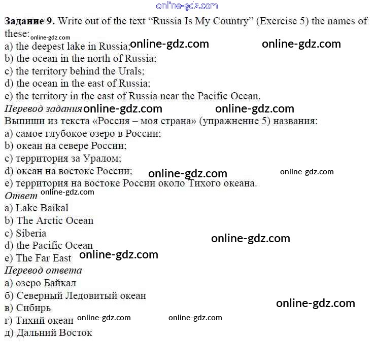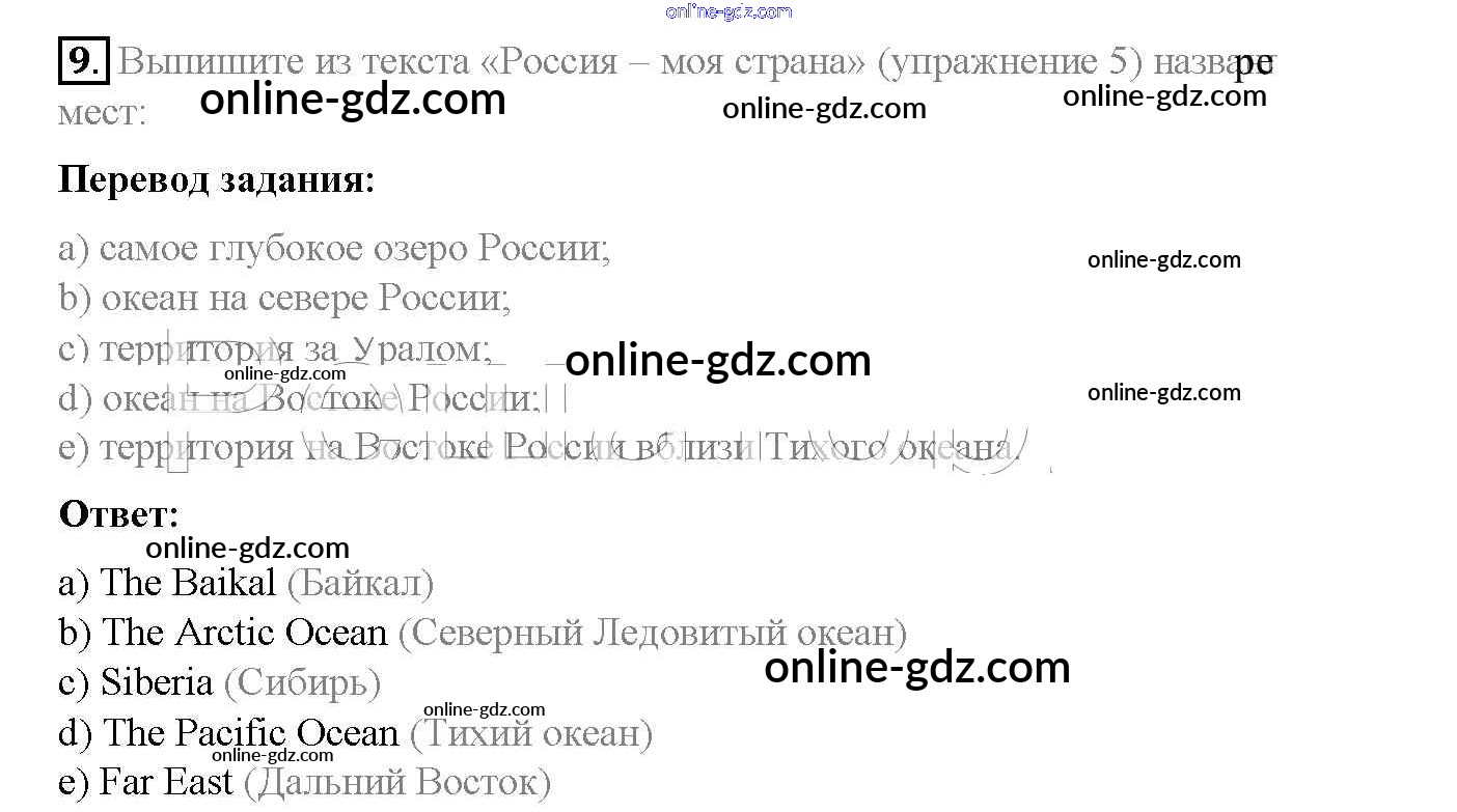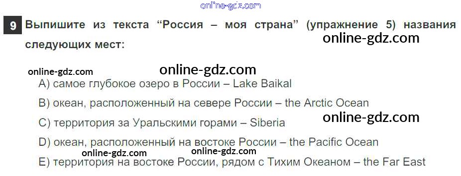 Готовые домашние задания по Английскому языку за 5 класс Учебник Афанасьева, Михеева Rainbow 2017 - Step 2 Unit 6. About Russia 9
