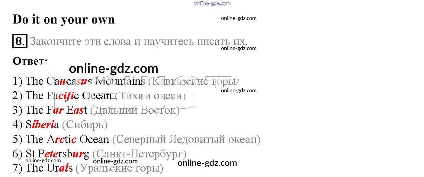 Готовые домашние задания по Английскому языку за 5 класс Учебник Афанасьева, Михеева Rainbow 2017 - Step 3 Unit 6. About Russia 8