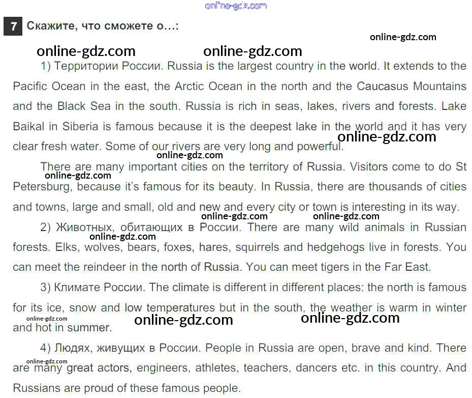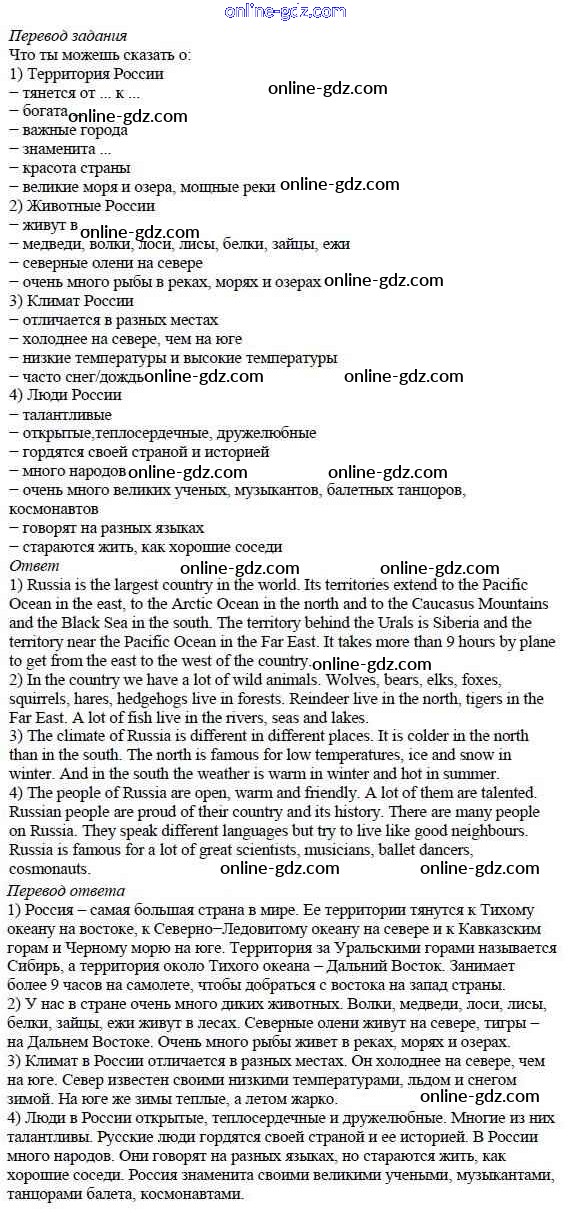 Готовые домашние задания по Английскому языку за 5 класс Учебник Афанасьева, Михеева Rainbow 2017 - Step 8. Round-up Unit 6. About Russia 7