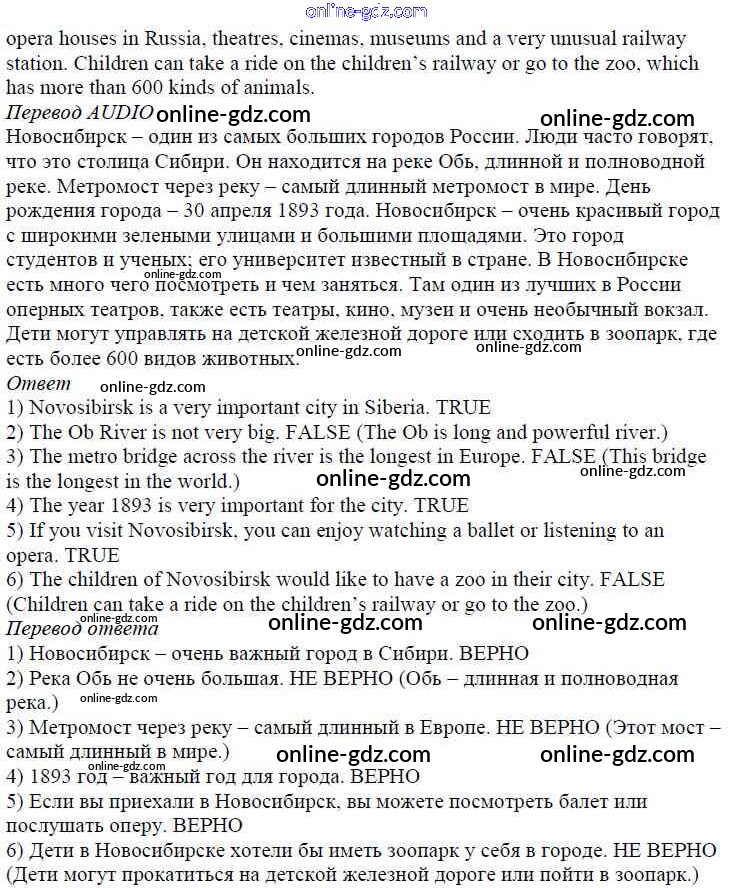 Готовые домашние задания по Английскому языку за 5 класс Учебник Афанасьева, Михеева Rainbow 2017 - Step 9. Test Yourself Unit 6. About Russia 1