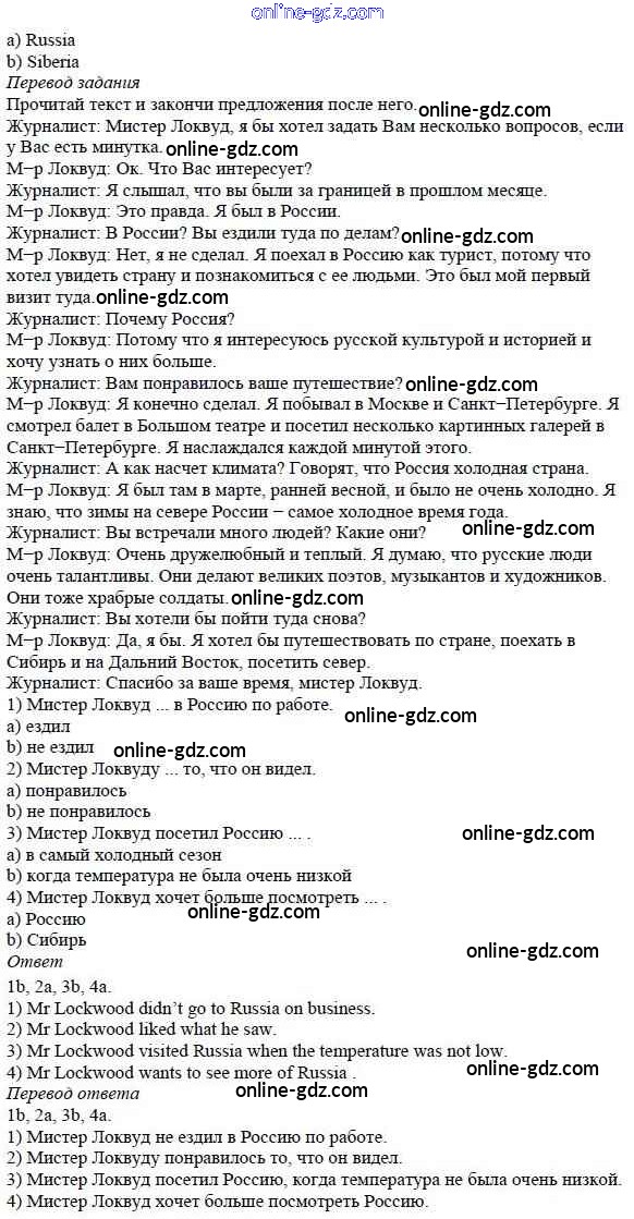 Готовые домашние задания по Английскому языку за 5 класс Учебник Афанасьева, Михеева Rainbow 2017 - Step 9. Test Yourself Unit 6. About Russia 2