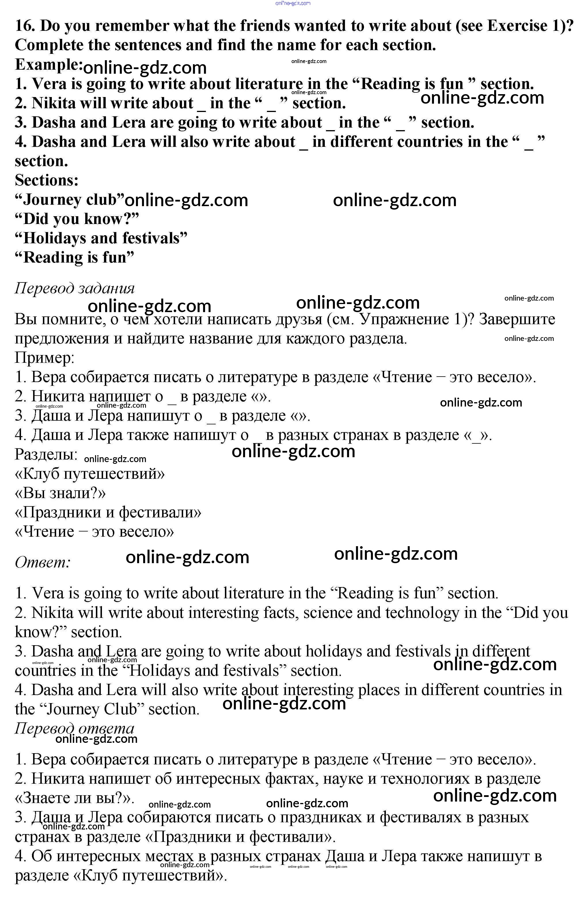 Готовые домашние задания по Английскому языку за 5 класс Учебник Вербицкая, Эббс Forward 2016 - Unit 1. Let’s make a magazine 16