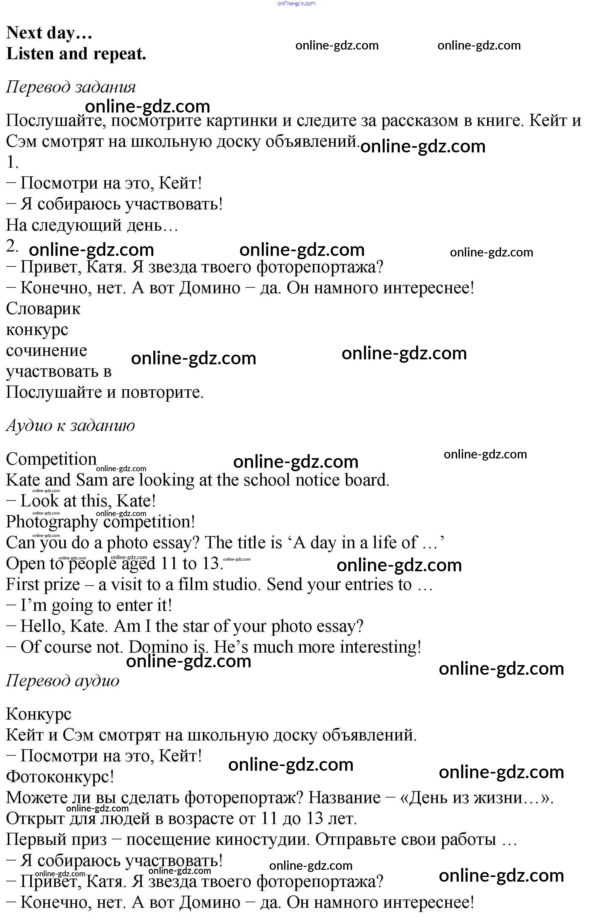 Готовые домашние задания по Английскому языку за 5 класс Учебник Вербицкая, Эббс Forward 2016 - Unit 2. The competition 1