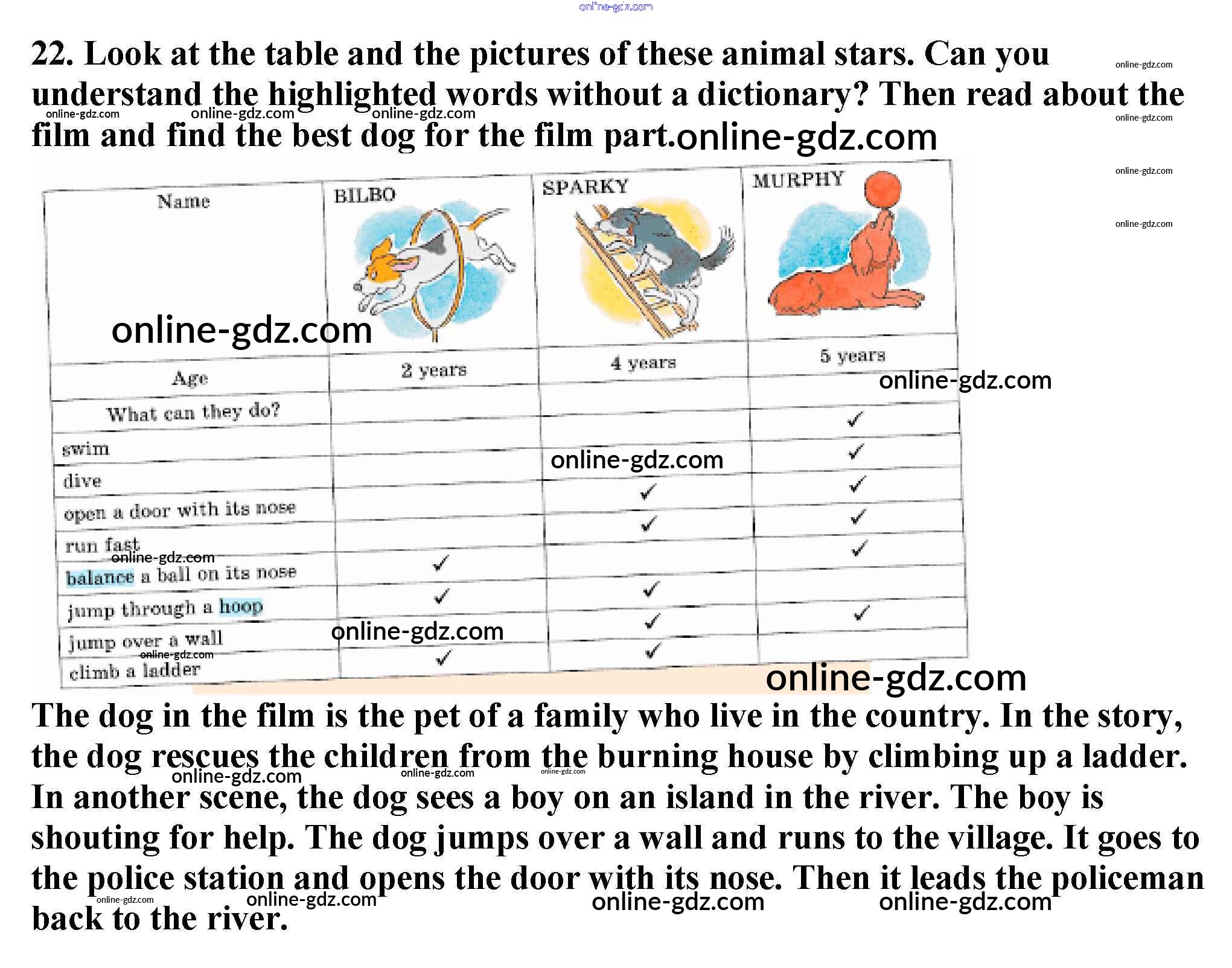 Готовые домашние задания по Английскому языку за 5 класс Учебник Вербицкая, Эббс Forward 2016 - Unit 3. At the film studio 22