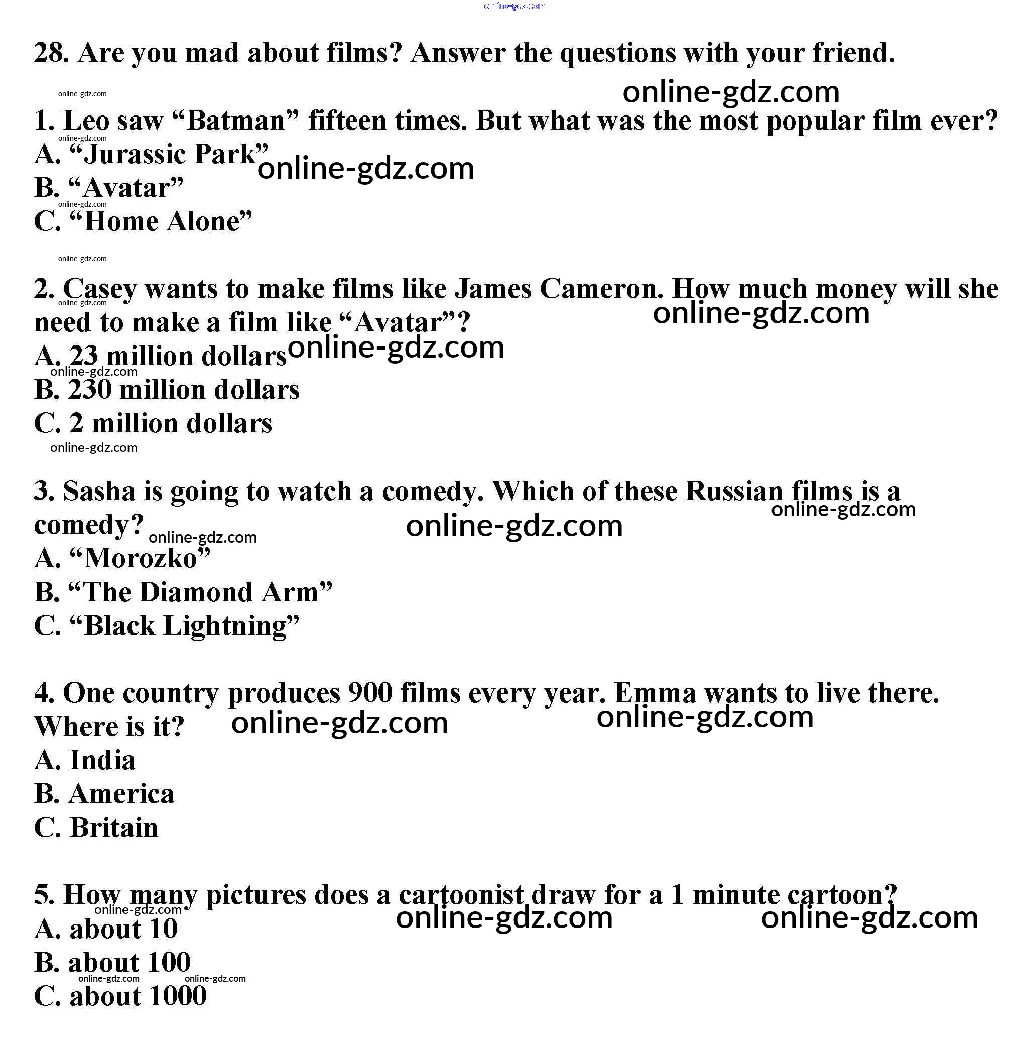 Готовые домашние задания по Английскому языку за 5 класс Учебник Вербицкая, Эббс Forward 2016 - Unit 3. At the film studio 28