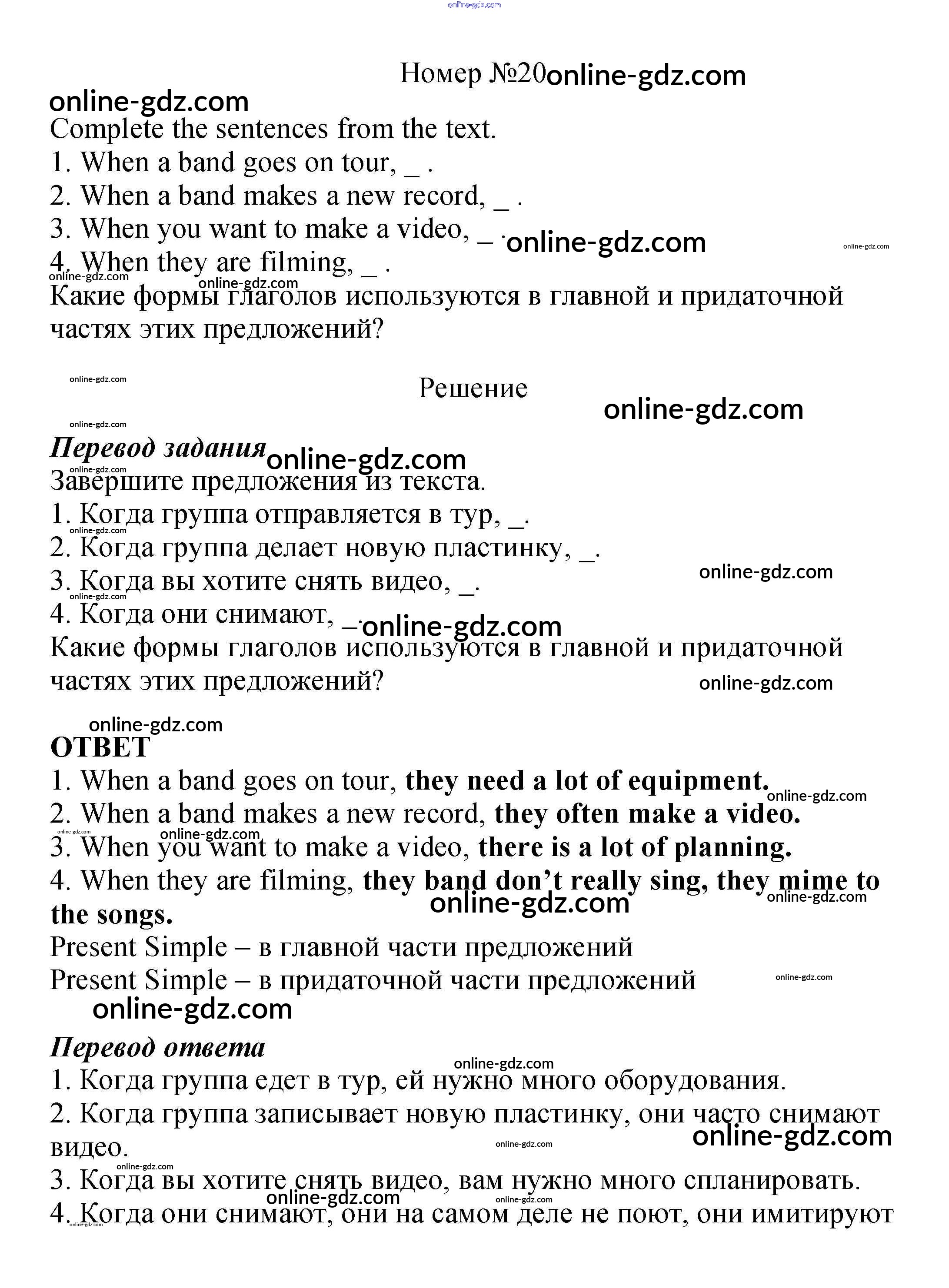 Готовые домашние задания по Английскому языку за 5 класс Учебник Вербицкая, Эббс Forward 2016 - Unit 10. Interests and hobbies 20