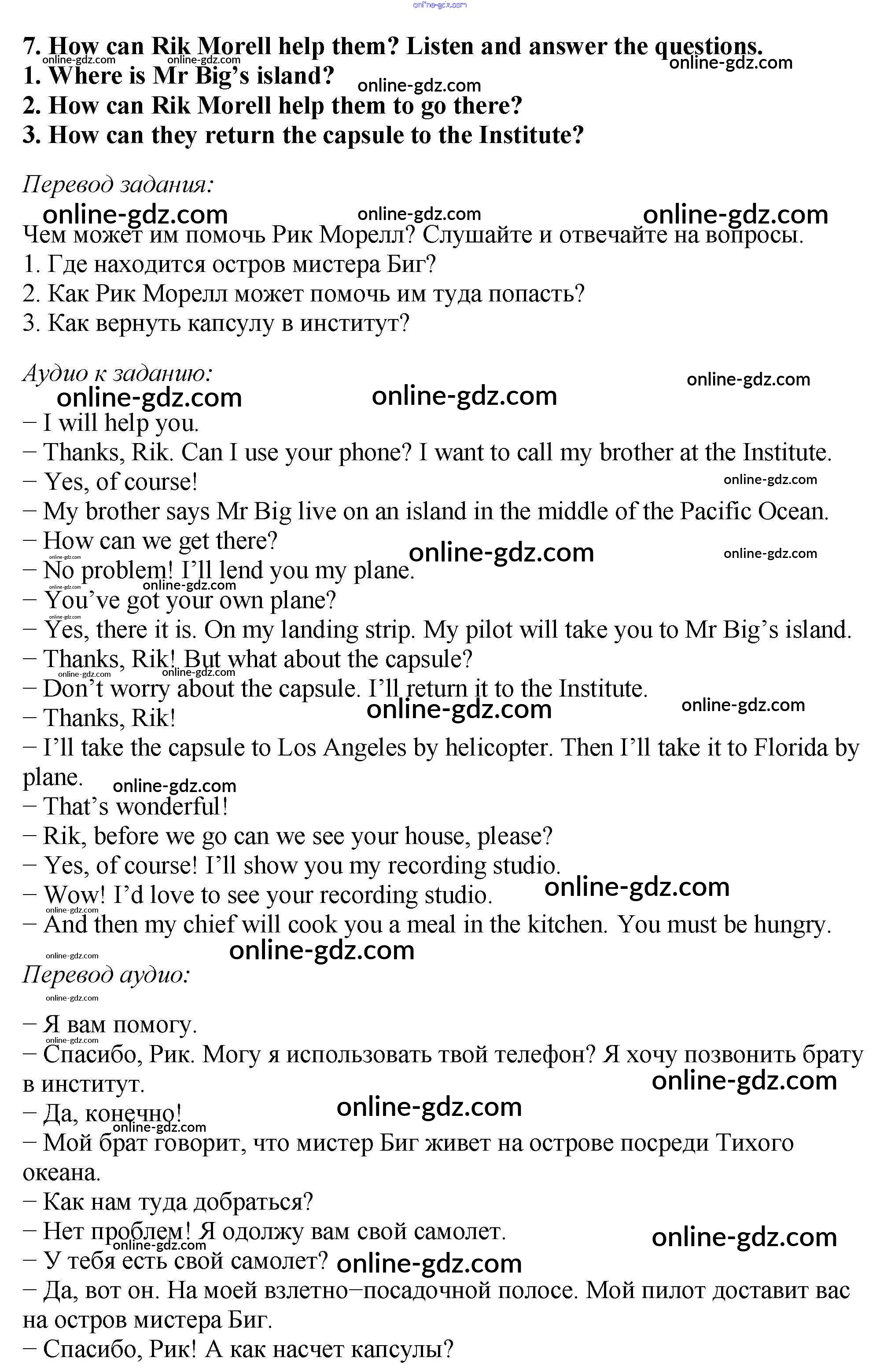 Готовые домашние задания по Английскому языку за 5 класс Учебник Вербицкая, Эббс Forward 2016 - Unit 11. Can we speak to Rik Morell, please? 7