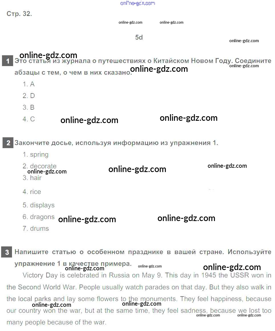 Готовые домашние задания по Английскому языку за 6 класс Рабочая тетрадь Ваулина, Дули Spotlight 2016 - Страницы 32