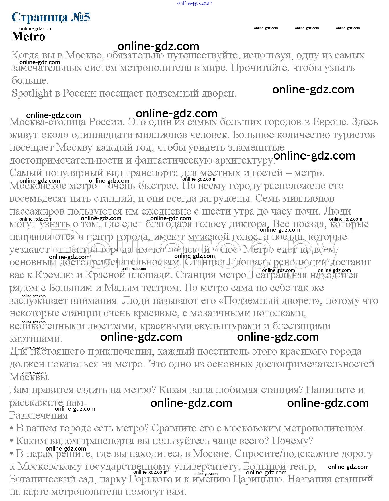 Готовые домашние задания по Английскому языку за 6 класс Рабочая тетрадь Ваулина, Дули Spotlight 2016 - Spotlight in Russia 5