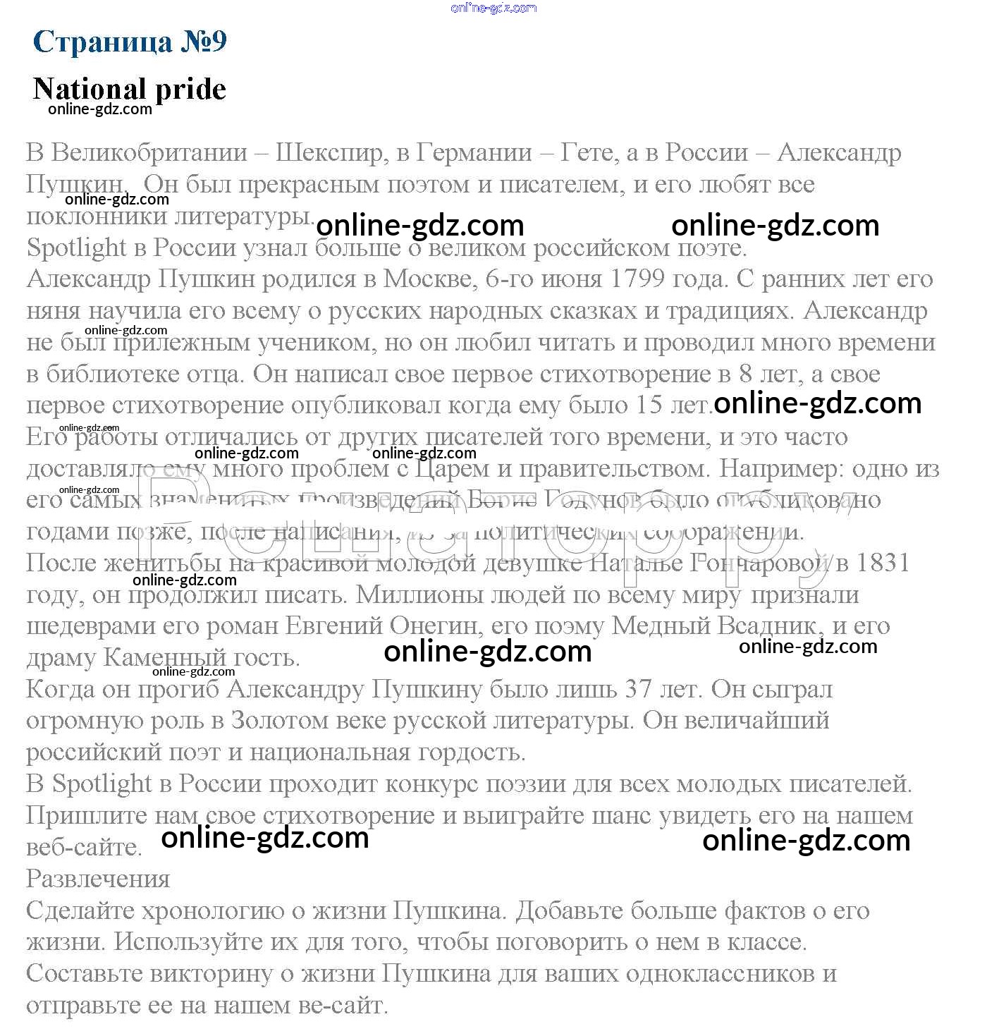 Готовые домашние задания по Английскому языку за 6 класс Рабочая тетрадь Ваулина, Дули Spotlight 2016 - Spotlight in Russia 9