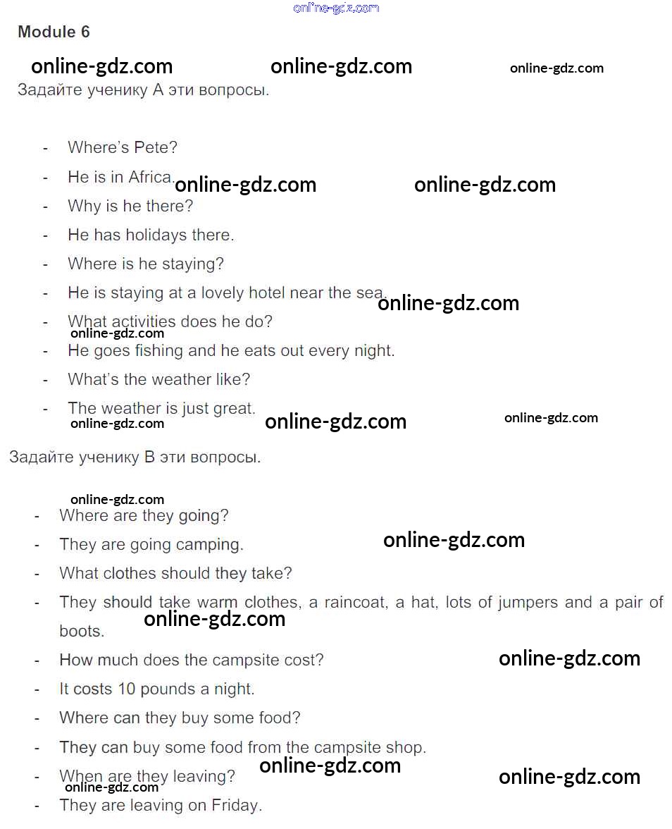 Готовые домашние задания по Английскому языку за 6 класс Рабочая тетрадь Ваулина, Дули Spotlight 2016 - Работа в парах. Модули 6