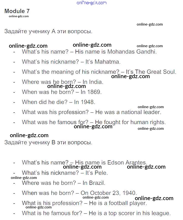 Готовые домашние задания по Английскому языку за 6 класс Рабочая тетрадь Ваулина, Дули Spotlight 2016 - Работа в парах. Модули 7