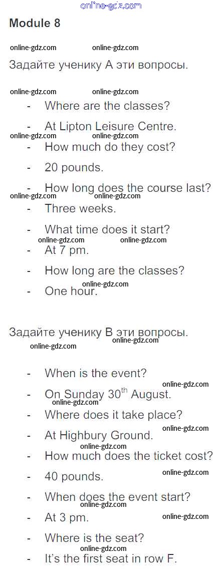 Готовые домашние задания по Английскому языку за 6 класс Рабочая тетрадь Ваулина, Дули Spotlight 2016 - Работа в парах. Модули 8