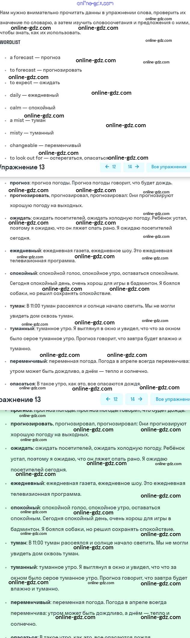 Готовые домашние задания по Английскому языку за 6 класс Учебник Афанасьева, Михеева Углубленный уровень 2016 - Unit 1. Weather Часть 1 13