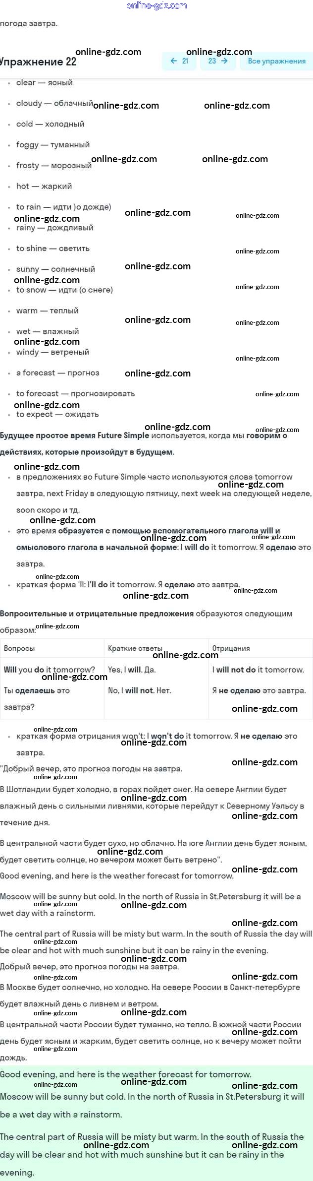 Готовые домашние задания по Английскому языку за 6 класс Учебник Афанасьева, Михеева Углубленный уровень 2016 - Unit 1. Weather Часть 1 22