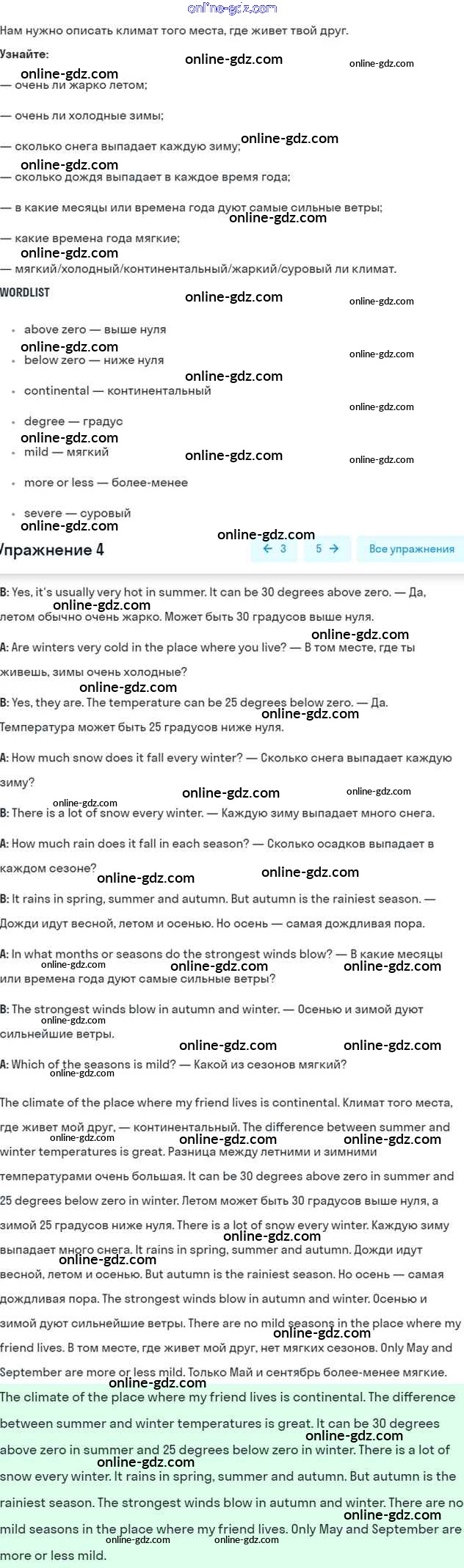Готовые домашние задания по Английскому языку за 6 класс Учебник Афанасьева, Михеева Углубленный уровень 2016 - Unit 2. Climate Часть 1 4